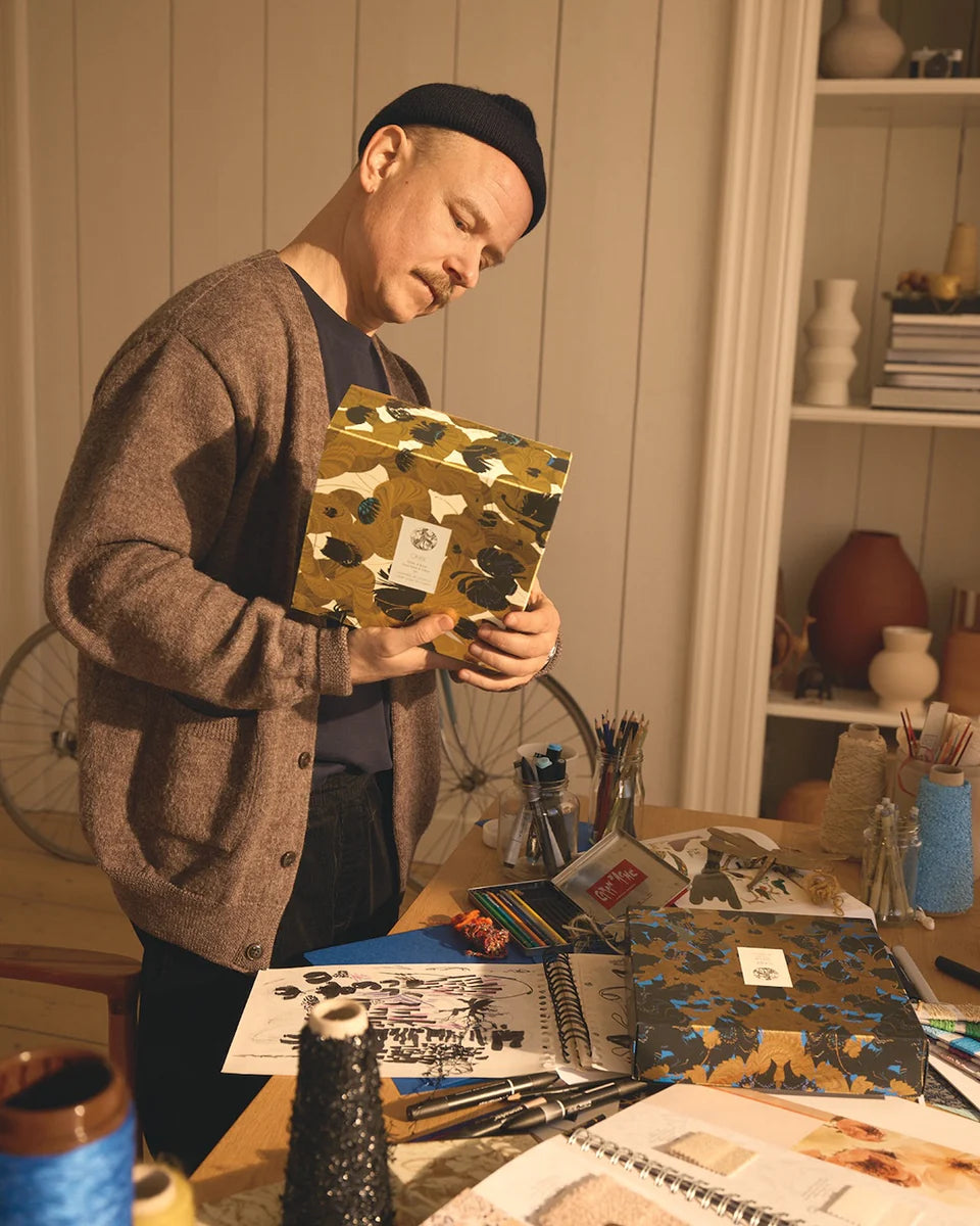 Saksi's work—inspired by his Nordic culture—blends mythology, geometry, and natural beauty into a rich, modern expression of artistry. With a shared commitment to craftsmanship, storytelling and attention to detail, our collaboration with Saksi elevates secondary packaging from a functional box into an artistic canvas.
