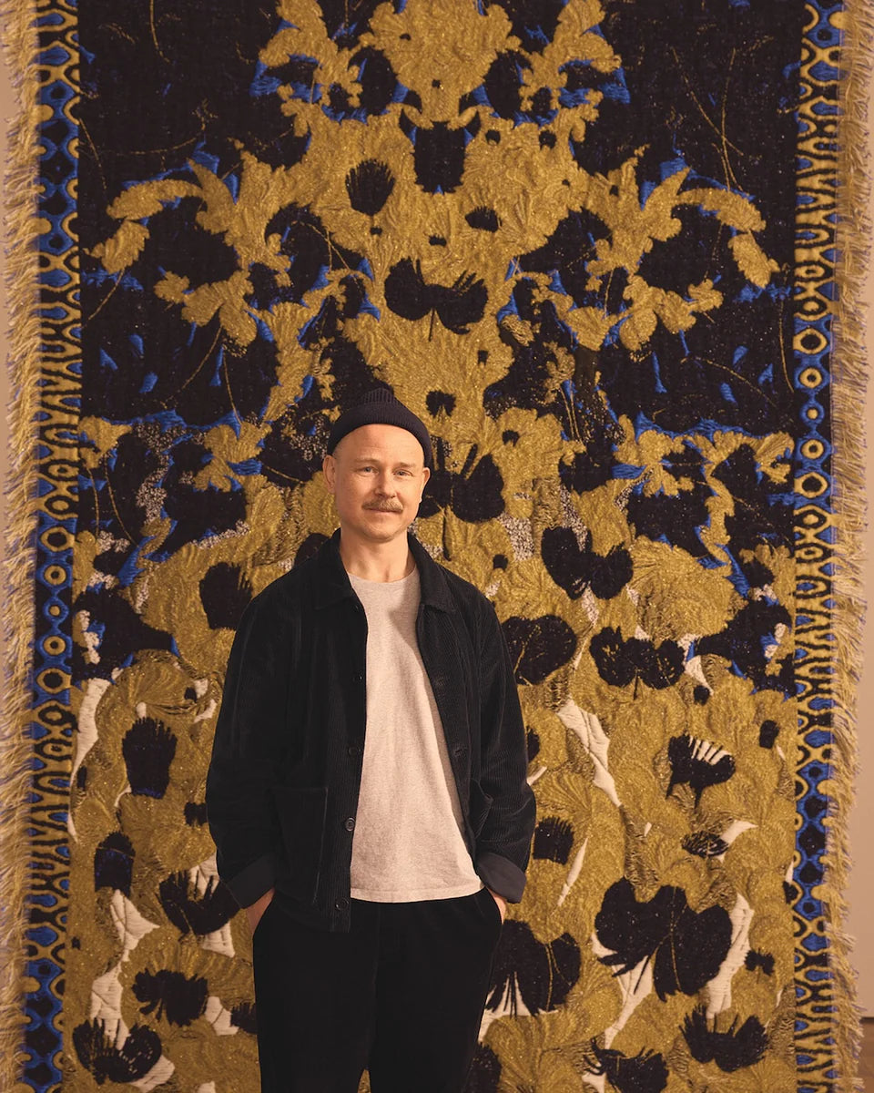 To further celebrate craft, Oribe commissioned Saksi to bring the woven design to life in the form of a one-of-a-kind tapestry.